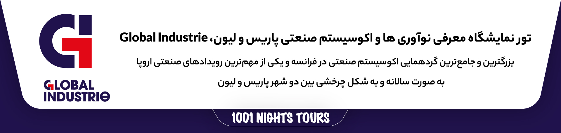 حضور در نمایشگاه Global Industrie برای هر کسبوکاری که به دنبال ارتقای سطح فناوری، کشف شرکای صنعتی جدید و درک روند جهانی صنعت ۴.۰ است، ضروری است. با انتخاب سفرهای هزار و یکشب، میتوانید با آسودگی خاطر بر اهداف کاری خود تمرکز کنید و از حضور در بزرگترین گردهمایی صنعتی فرانسه نهایت بهره را ببرید.