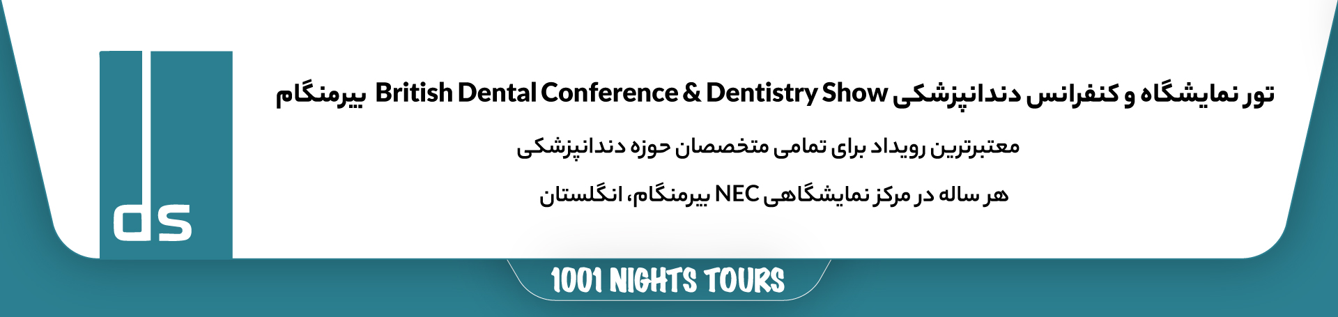 نمایشگاه و کنفرانس British Dental Conference & Dentistry Show فرصتی بینظیر برای رشد حرفهای، شبکهسازی و ورود به بازار انگلستان است. با انتخاب سفرهای هزار و یکشب، میتوانید مطمئن باشید که تمامی جزئیات سفرتان به بهترین شکل برنامهریزی شده و تنها دغدغه شما، بهرهگیری حداکثری از این رویداد حرفهای خواهد بود. همین امروز با ما تماس بگیرید.